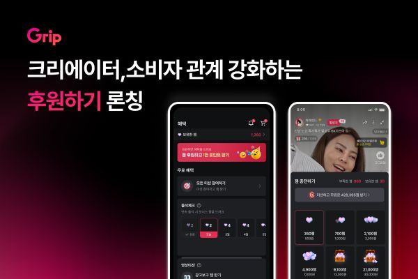 커머스 크리에이터 플랫폼 그립컴퍼니가 기존 라이브 부스터를 고도화한 ‘후원하기’ 기능을 론칭했다고 23일 밝혔다. 가상 재화 ‘젬(Gem)’을 통해 소비자가 크리에이터를 직접 응원하는 구조로, 실시간 목표 달성 바와 ‘레벨업’ 시스템을 도입해 재미 요소를 더했다.