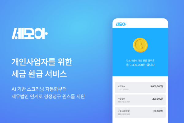 B2B 핀테크 기업 ㈜파이노버스랩(대표 장종욱)이 개인사업자를 위한 간편 세금환급 서비스 ‘세모아’를 정식 출시했다. 세모아는 AI 기반 스크리닝 자동화 기술을 통해 복잡한 경정청구 절차를 간편하게 돕는 하이브리드형 플랫폼이다.