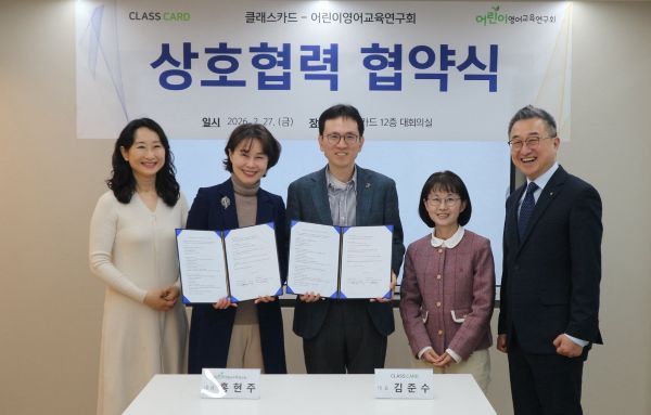 클래스카드의 초등용 서비스 ‘클래스5(Class5)’는 듣기, 읽기, 쓰기, 말하기, 문법 등 5개 영역을 강화하는 아웃풋 중심 솔루션이다. 이번 협약을 통해 어린이 영어교육 연구회는 프로그램의 교육 효과 검증과 감수를 전담하게 된다. 이로써 클래스5는 온·오프라인을 잇는 블렌디드 수업 모델의 완성도를 높이고, 전국 3,000여 개 가맹 학원에 검증된 고품격 교육 프로그램을 제공하게 됐다.