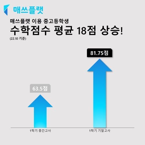 본 수치는 매쓰플랫 가입 학교, 학원, 공부방 선생님을 대상으로 한 성적 인증 이벤트로 얻은 결과로, 지난 1학기 수학 중간고사 대비 기말고사 결과를 비교해 도출한 숫자다. 성적 기입 대상 학생은 중‧고등학교다.