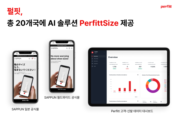 핏테크 스타트업 펄핏은 18일 AI 기반 신발 추천 솔루션 ‘펄핏사이즈 (PerfittSize)’를 여성 신발 브랜드 ‘사뿐’의 월드와이드 공식몰 및 일본 공식 온라인 몰에 론칭했다고 발표했다. 이번 론칭으로 한국, 일본, 미국을 포함한 총 20개국에 펄핏사이즈 서비스가 제공된다.