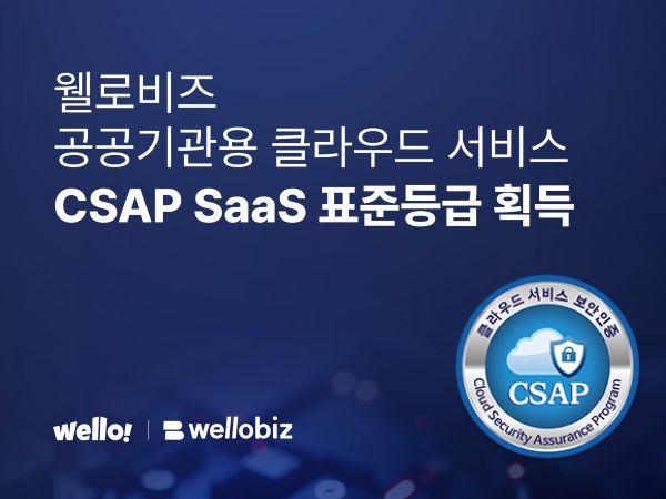 AI 거브테크 스타트업 웰로가 자사의 공공사업 SaaS 솔루션 '웰로비즈(WelloBiz)'에 대한 클라우드 서비스 보안 인증(CSAP) SaaS 표준등급을 22일 취득했다고 밝혔다.