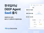 <span style="font-size: 18px;">한국딥러닝 딥에이전트 SaaS 출시 - K스타트업 밸리</span> “서버 구축 없이 AI 문서 비서 채용”... 한국딥러닝, ‘딥에이전트’ SaaS 버전 출시 구독형 도입으로 인프라 장벽 제거… VLM 멀티엔진으로 표·수식·레이아웃 정밀 분석 시각지능 AI 전문 기업 한국딥러닝이 자사의 핵심 문서 AI 플랫폼 ‘딥에이전트(DEEP Agent)’를 구독형 SaaS(Software as a Service) 방식으로 독립 출시했다고 2일 밝혔다. 기존 온프레미스(구축형) 방식의 강력한 성능은 유지하되, 중소기업부터 대기업까지 인프라 부담 없이 즉각적으로 AI 문서 처리 업무를 시작할 수 있도록 접근성을 극대화했다. 1. VLM 기반 멀티엔진으로 ‘문서의 맥락’까지 읽는다 딥에이전트 SaaS는 단순히 글자를 읽는 OCR을 넘어 문서의 텍스트, 표, 수식, 레이아웃을 통합 분석한다. 특히 시각 언어 모델(VLM)과 고정밀 구조화 엔진을 결합한 멀티엔진 구조를 채택하여, 복잡한 비정형 문서에서도 필요한 키 밸류(Key-Value) 데이터를 정확하게 추출한다. 새롭게 도입된 ‘워크스페이스’ 기