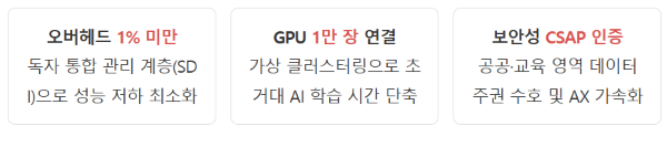 엘리스그룹의 장관상 수상은 '대한민국 AI 인프라의 기술적 독립'이 선언된 순간입니다. 전문가 그룹은 특히 1% 미만의 가상화 오버헤드에 경탄하고 있습니다. 이는 가상 머신(VM)을 쓰면서도 물리적 장비를 직접 사용하는 것과 다름없는 성능을 낸다는 의미로, 고가의 GPU 자원을 낭비 없이 100% 활용할 수 있게 해주는 핵심 기술입니다.