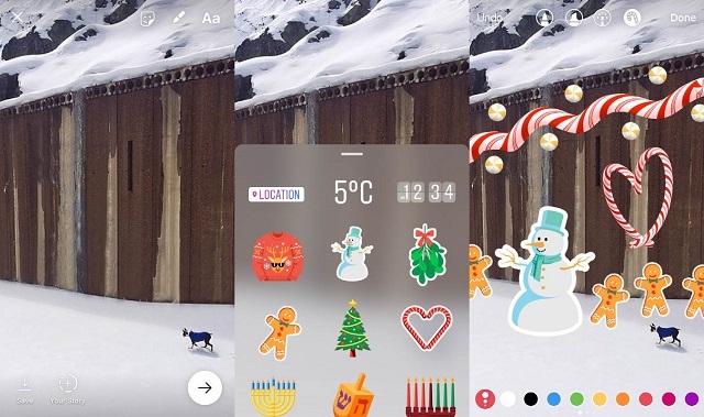 우선 인스타그램 스토리에 연말연시 분위기를 한껏 살려줄 다양한 스티커가 추가됐다. 인스타그램 스토리 꾸미기 화면 상단에 위치한 ‘스마일리 페이스 이모지’(웃는 얼굴 모양의 아이콘)를 누르면, 스티커를 활용해 자신만의 스토리를 꾸밀 수 있다.