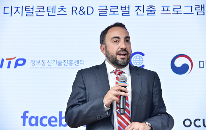 페이스북은 글로벌혁신센터 정보통신기술진흥센터와 함께 가상·증강현실 기업의 해외진출 공동지원에 합의하고 강남구 페이스북코리아 비즈니스 허브에서 디지털콘텐츠 R&D 글로벌 진출 프로그램 업무 협력 조인식을 가졌다. 사진은 알렉스 스태모스페이스북 최고보안책임자