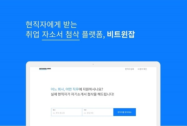 비트윈잡은 취업 및 이직을 준비하는 구직자가 지원하는 회사, 직무의 실제 현직자에게 직접 자기소개서를 첨삭받을 수 있는 플랫폼이다. 현재 800여 회사의 1천 명 이상의 현직자가 등록되어 첨삭 서비스를 제공하고 있으며, 그 숫자는 월평균 40%씩 늘어나고 있다.