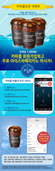 씨에스에이 코리아가 카피플앱 출시기념 아메리카노 무료지급 이벤트를 실시한다(사진제공: 씨에스에이코리아) 심해지는 미세먼지, 황사, 등으로 차량 세차에 대한 관심이 뜨거운 가운데 씨에스에이 코리아(대표 김현정)가 ‘카피플’앱을 출시했다.카피플은 앱은 자동차 표면에 스크레치나는 자동세차, 비싼 손세차 등 세차도 마음대로 하기 힘든 요즘, 간편하게 저렴한 출장세차를 부를수가 있으며, 그외에도 자동차 부품, 서비스에 대한 견적 등 다양한 서비스가 가능한 신개념 앱이다.카피플 앱 출시기념으로 현재 앱 가입시 파리바게트 아메리카노를 100% 공짜 지급 이벤트가 진행되고 있다. 카피플 관계자는 구글스토어에서 다운 가능하며, 가입 시 추천인 이름/ID에 ‘카피플이벤트’를 입력해야 아메리카노를 100% 지급 받을수 있으니 참고바란다고 말했다.‘카피플’ 앱을 출시한 씨에스에이 코리아는 30만 회원을 보유한 자동차 블랙박스 ‘블랙박스 동호회’ 카페를 운영중이며, 블랙박스뿐 아니라 출장세차, 유리막코팅, 등 자동차 관련 다양한 서비스를 하고 있다.출처: 씨에스에이코리아웹사이트:http://www.csakorea.co.kr