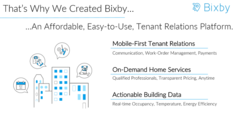 image credit :Bixby 빅스비 (Bixby)는 2016년 설립한 뉴욕 기반의 스타트업으로빅스비 (Bixby)는모든 유형 및 크기의 건물 소유주 및 관리자가 부동산을 더 효율적이고 효율적으로 유지하면서 세입자에게 최고의 서비스를 제공하는 최초의모바일건물관리 플랫폼이다. 빅스비(Bixby)는세입자와 통신하고 유지 보수 요청 및 임대료 등 청구금을 징수하기 위해 웹 및 모바일 앱을 통해 보다 효율적이고 지속 가능한 공동체로 변화시키는 것을 돕는다. 또한지역의 소규모 중소기업 비즈니스 파트너 통해서이동 및 보관에서 청소, 세탁 및 드라이클리닝에 이르기까지 온디멘드(on-demand) 홈 서비스를 제공한다. Bixby의게시판은 건물의 유지 관리 요청 / 관리 포털; 통지 시스템; 온라인 지불(ACH & credit / debit) 등이 있어부동산 소유자 및 관리자가 부동산을 더 연결되고 효율적이며 지속 가능한 공동체로 변모하도록 도와준다. Bixby의 # 1 목표는 거주자와 거주자가 귀하의 건물 유형이나 규모에 상관없이 최상의 경험을 할 수 있도록 함으로써 귀하의 건물에서 더 오래 행복하고 건강하게 지낼 수 있도록 하는 것이다. Bixby는 현재