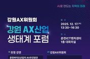 강원창조경제혁신센터와 강원AX위원회는 오는 12월 17일 오후 1시 30분 “강원 AX 산업 생태계 포럼”을 춘천ICT벤처센터 1층 대회의실에서 개최할 예정이다. 이번 포럼은 ‘26년 AX산업 발전을 위한 협력방안’을 주제로 전문가 초청 강연과 AX위원회 심층토론이 진행될 예정이다. 1부는 △ 춘천바이오산업의 AX추진방향(김경환 춘천바이오산업진흥원 전략기획실 실장) △ AI기반 R&D기술과 실증 사례 발표(안상섭 지오맥스소프트 대표) △강원 제조·관광·의료·공공서비스를 연결하는 피지컬 AX 실증생태계 구축방향(손병희 마음AI 본부장) 순으로 초청 강연이 진행된다. 2부는 강원혁신센터 이해정 대표이사를 좌장으로 「‘26년 AX 산업 발전을 위한 협력 방안」에 대한 토론을 진행한다. 이번 포럼은 공개행사로 창업기업, 유관기관 관계자, 학생, 일반인 등 강원 지역 AX산업에 관심 있는 누구나 참석 가능하다. 사전 예약 후 포럼에 참석한 30명에게는 OTT 이용권이 무료로 제공된다. 자세한 내용은 강원창조경제혁신센터 홈페이지를 통해 확인할 수 있다. 한편, 강원혁신센터는 2025년 8월 26일 강원지역 AI·AX 생태계 구축을 위하여 “강원 AX 위원회”를